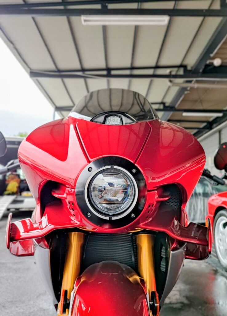 フロントウィンカーも小型化し、驚くほどコンパクトでありながらも、しっかり車検対応とのこと。