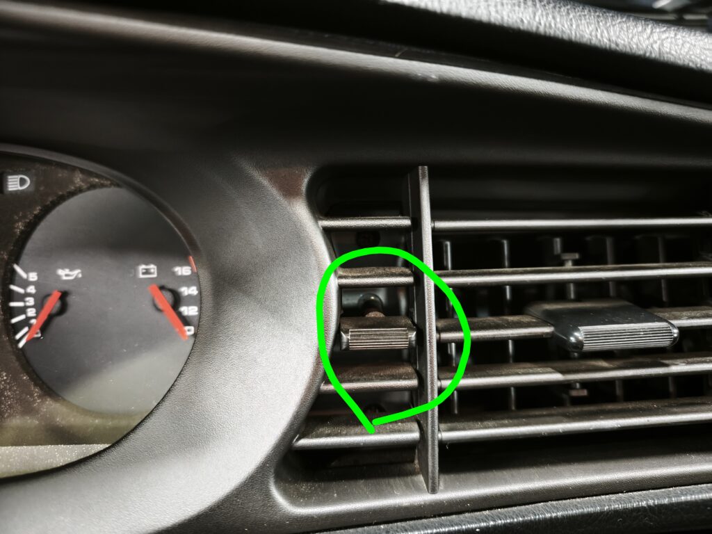 正解は、エアコンのルーバーのノブとそっくりな形をした、緑で囲まれている部分。